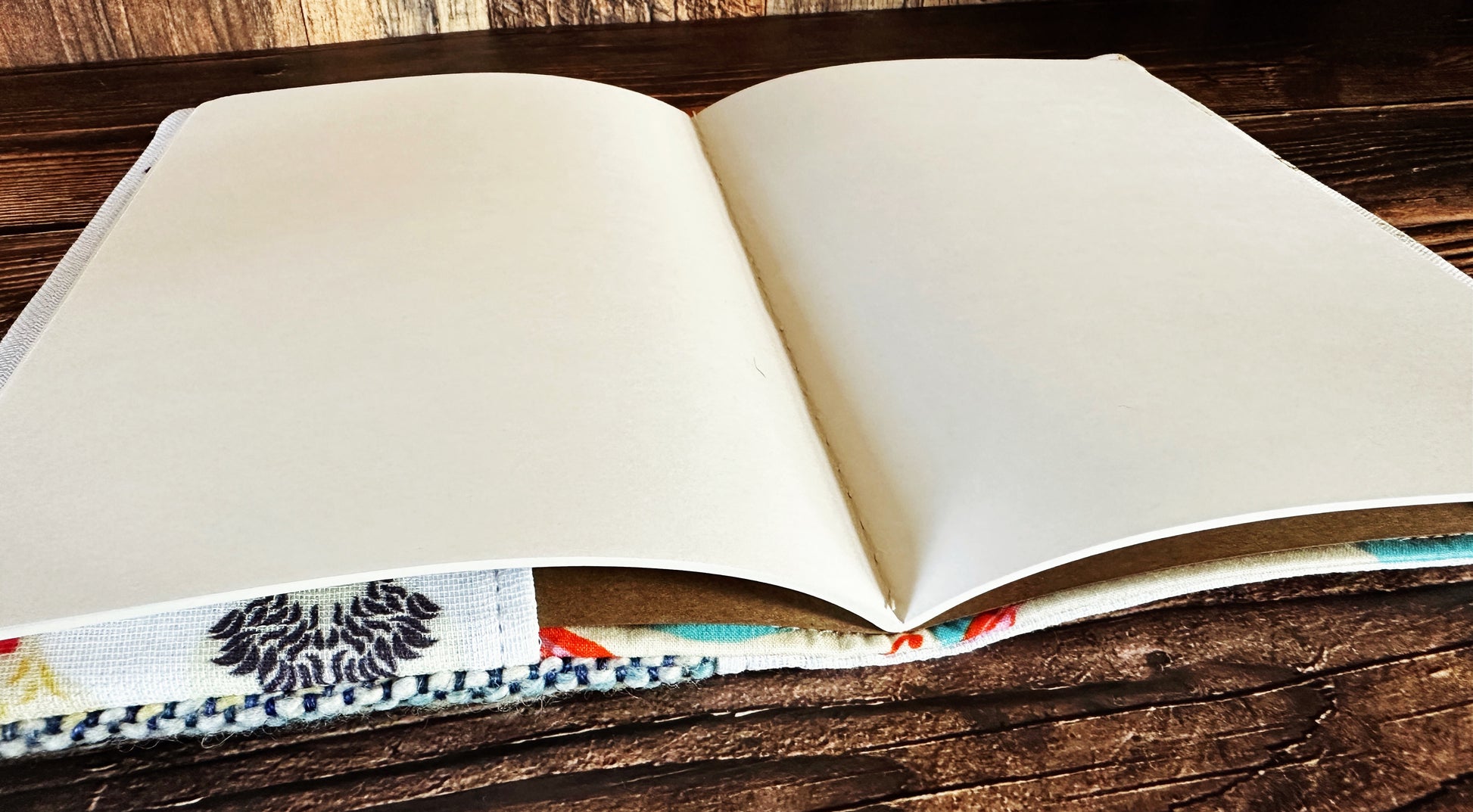 Designed to fit A5 journals, notebooks, and sketchpads, the cover features an adjustable construction that accommodates both slim notebooks and thick, well-loved volumes. Simply slide your book into the inner flaps and let the wool and coordinating cotton print wrap it in durable, handmade comfort.