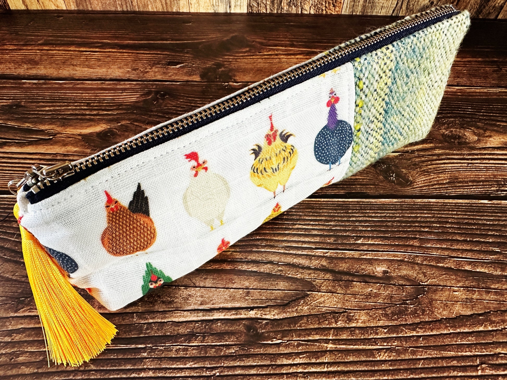 Chicken Breeds with Handwoven Wool Long and Lean Zipper Bag