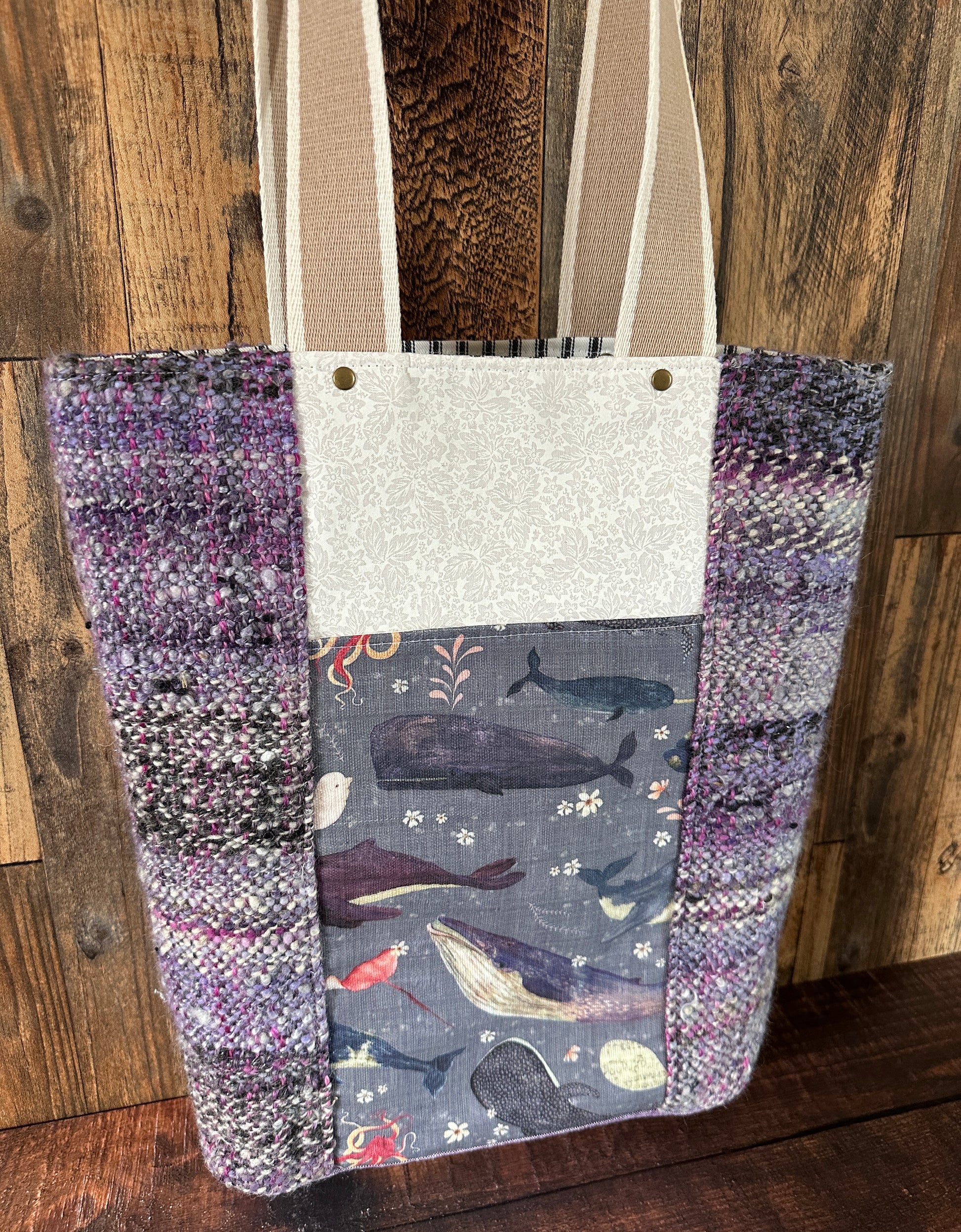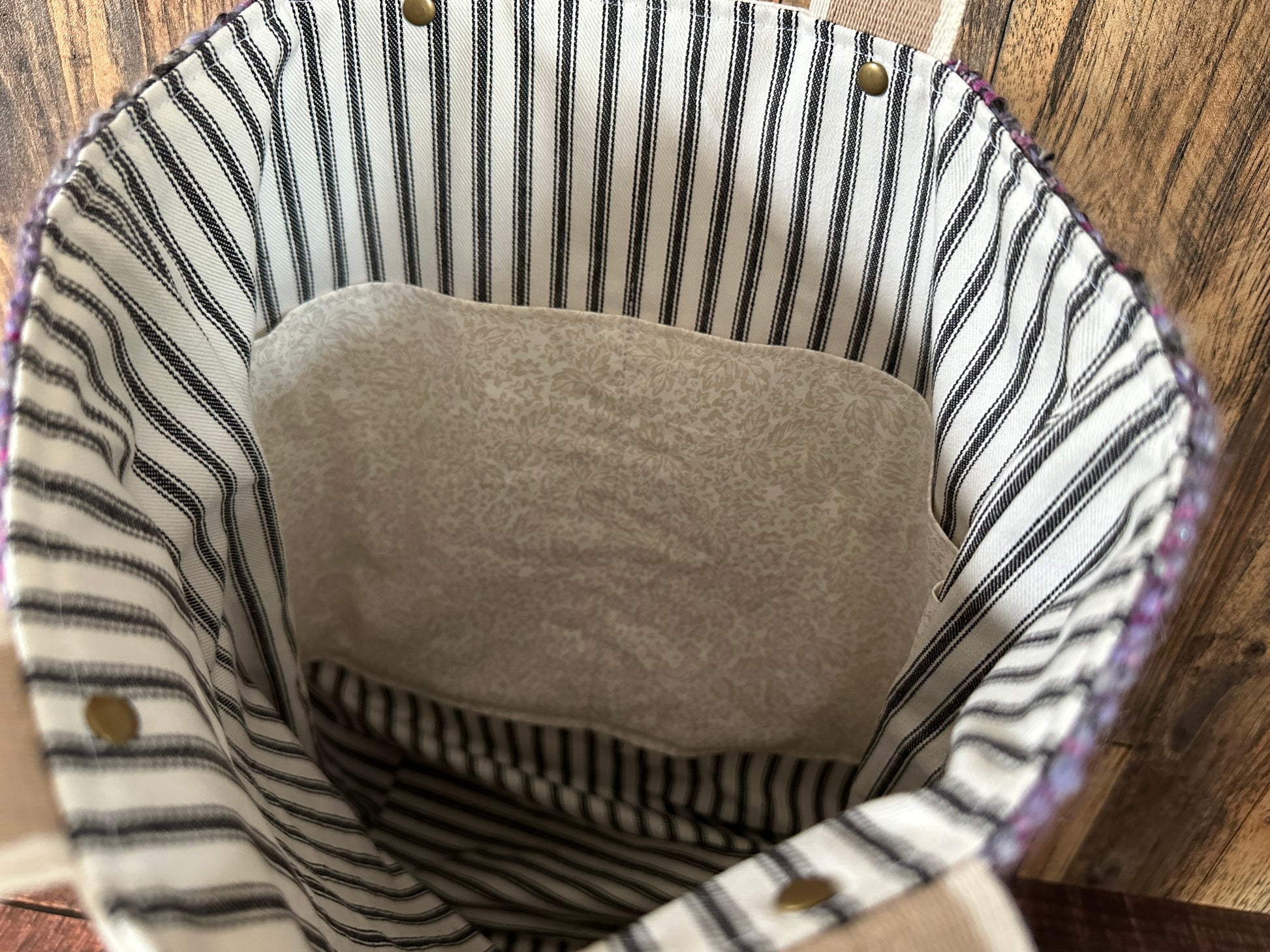 Chic and hip and simple, yet very lavish. A tote bag made with handspun, handwoven wool and completed with a full length zipper pocket on one side and a slip pocket on the other.