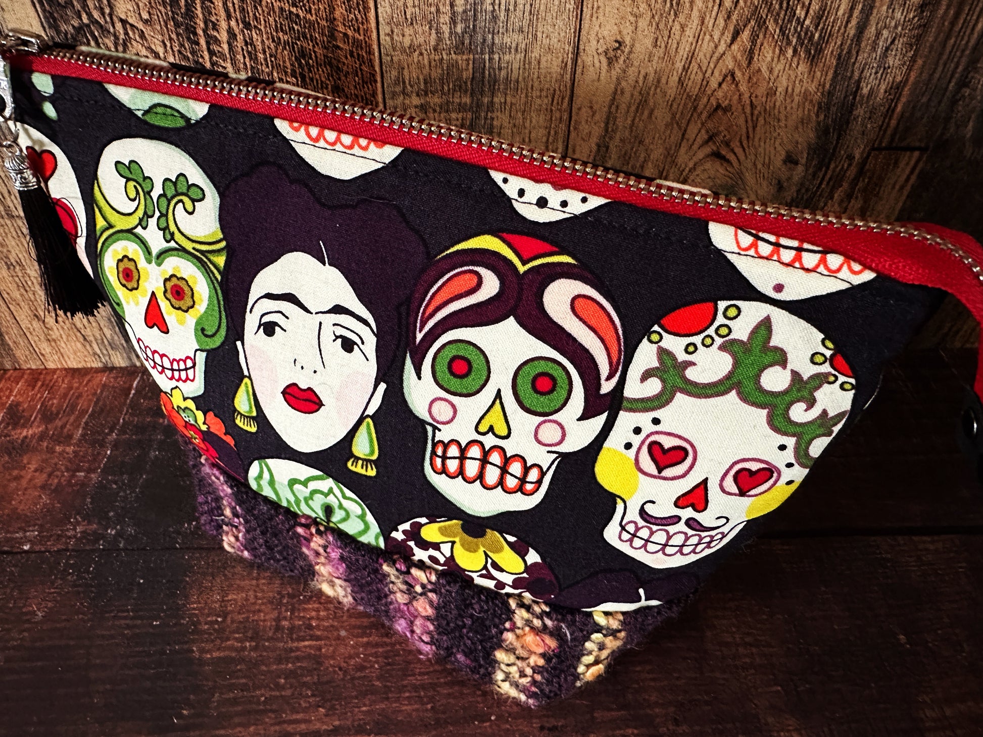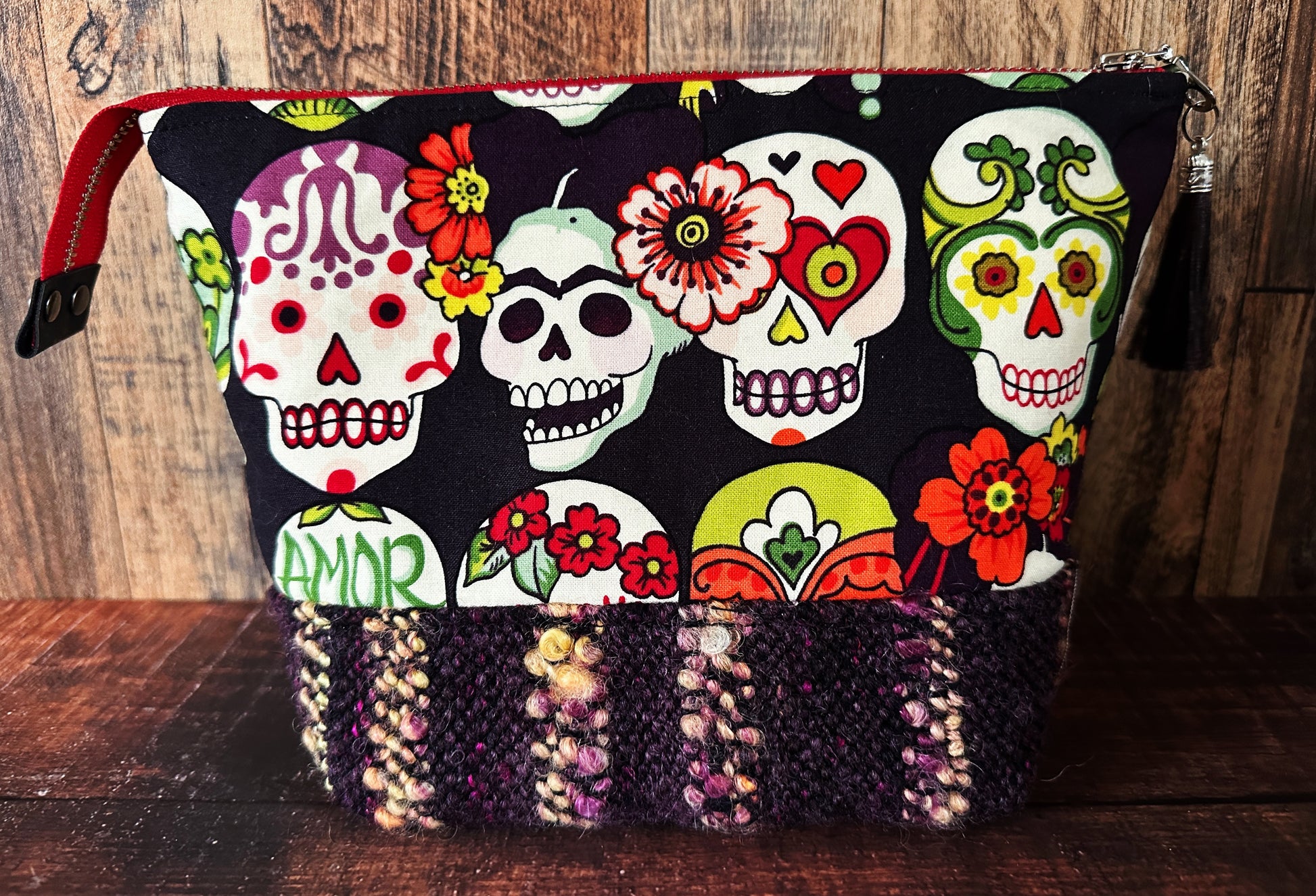 Frida and Calaveras & Woven Wool Small Open Wide Bag