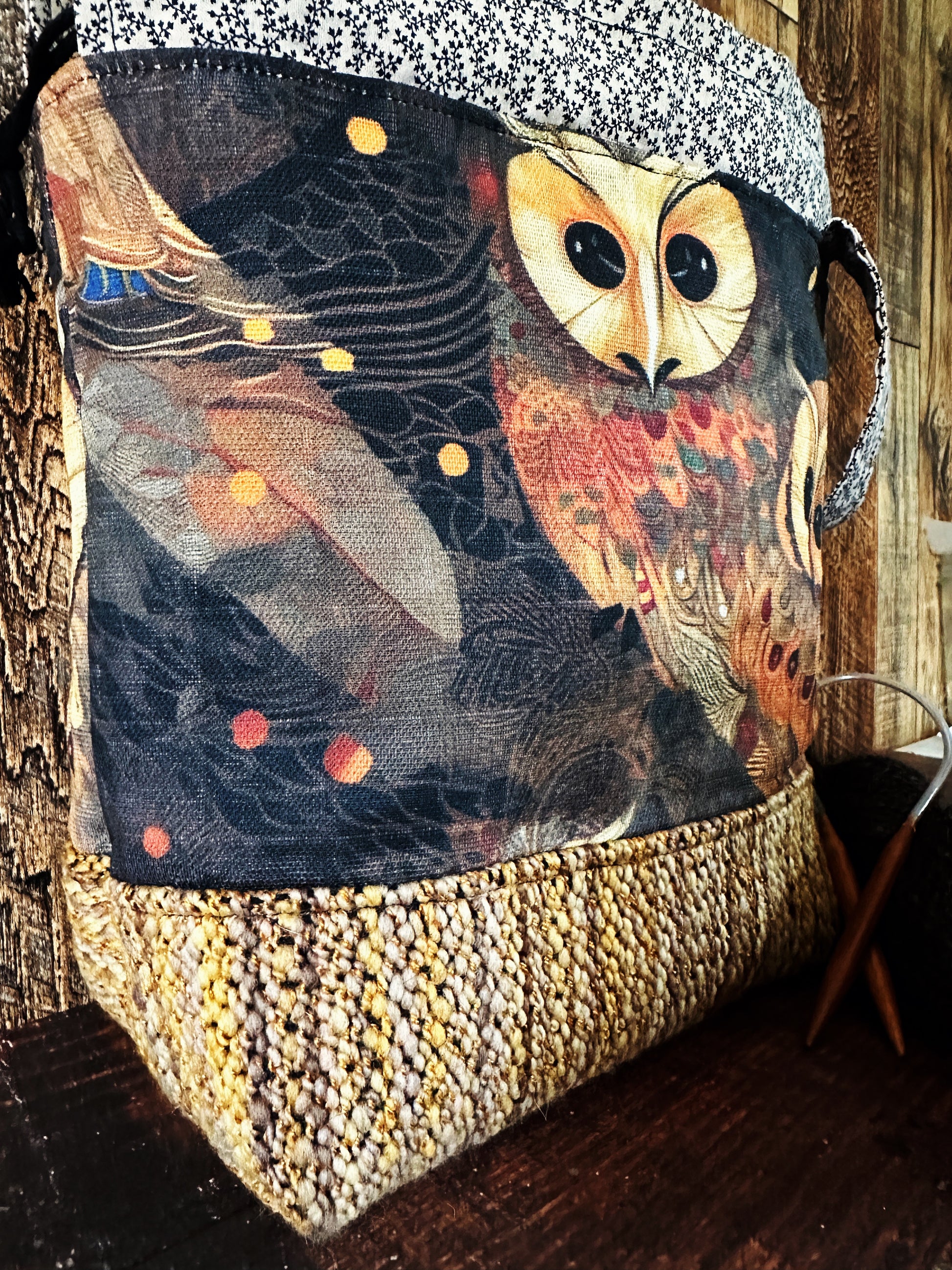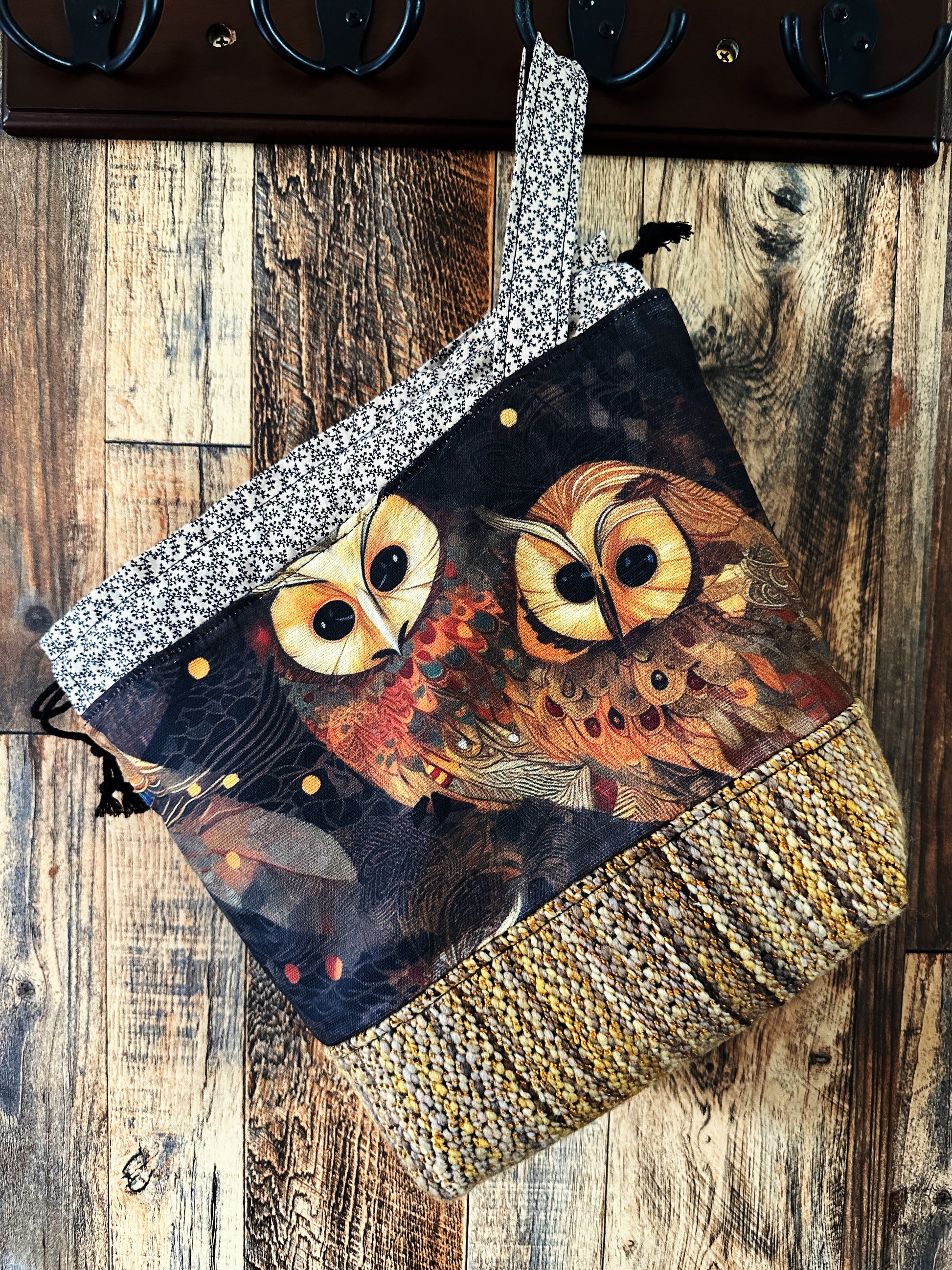 Golden Owls and Handwoven Wool Medium Project Bag (Copy)