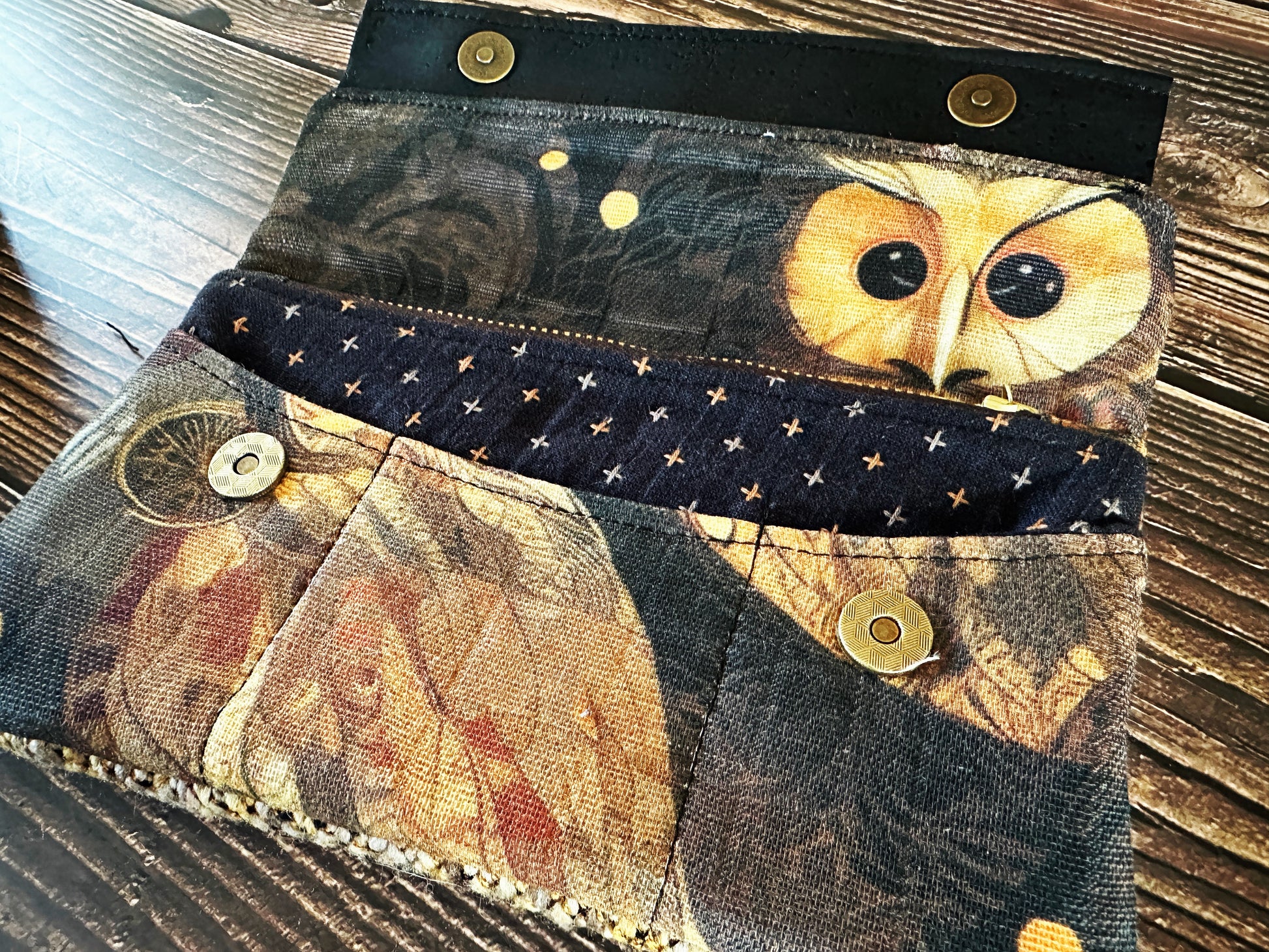 Care: All seams are sewn, resewn, and sewn again for maximum durability. However, this is still a piece of handmade textile art. Spot clean or hand wash and lay flat to dry. Cool iron with a cover cloth if you must.