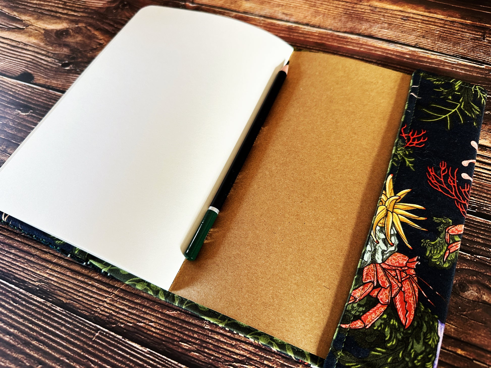Hermit Crabs and Anemones with Handwoven Wool Adjustable A5 Journal Cover