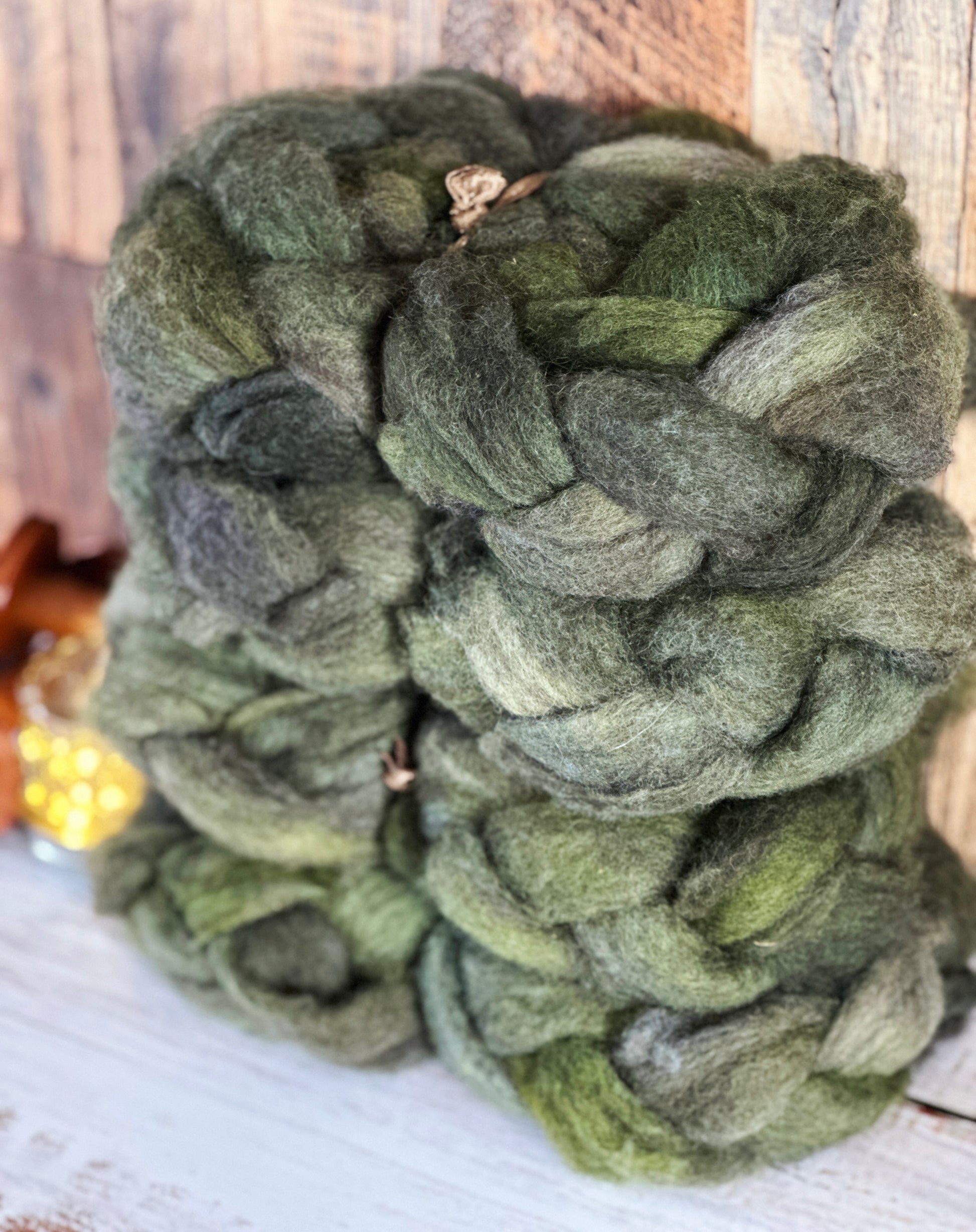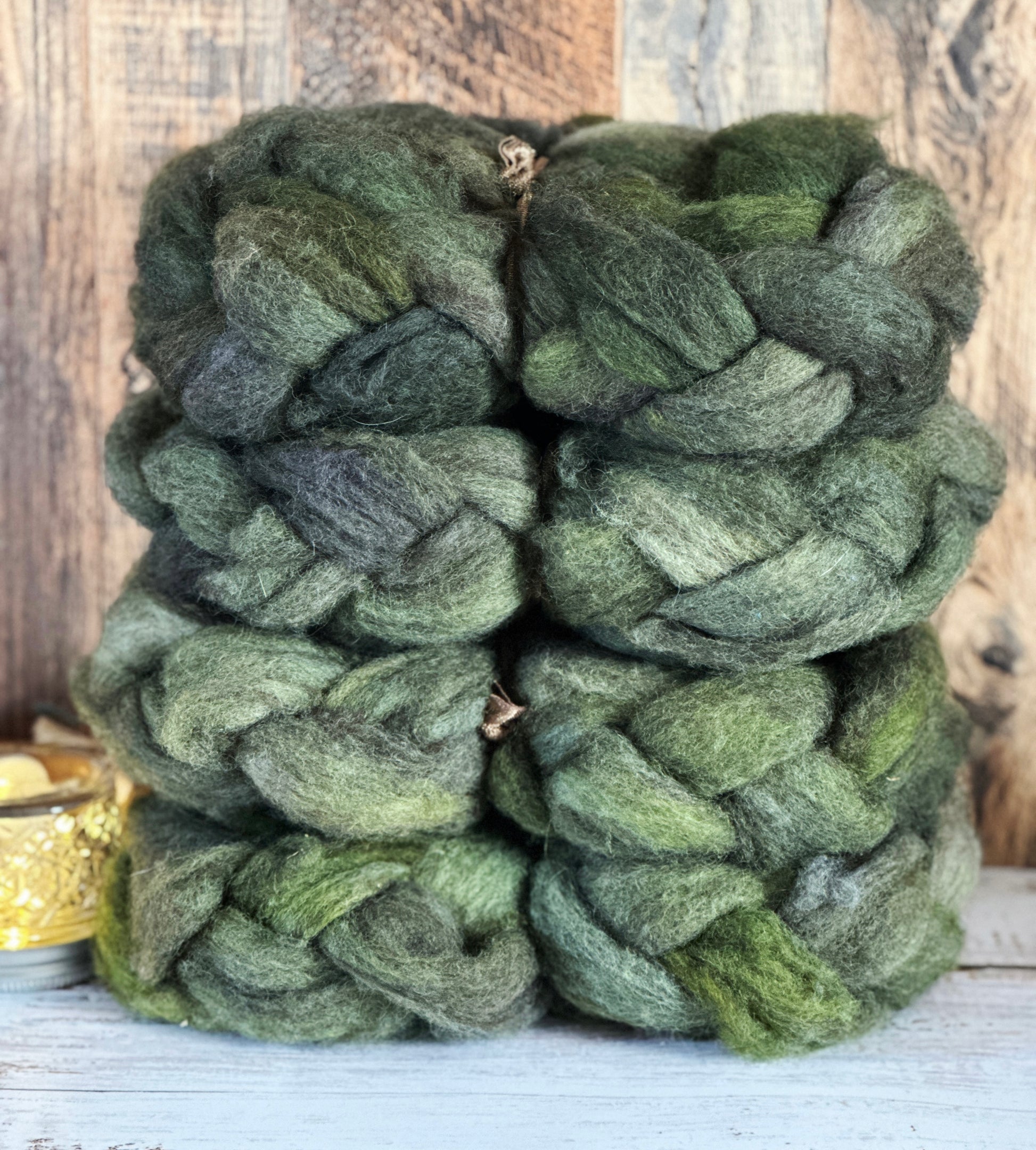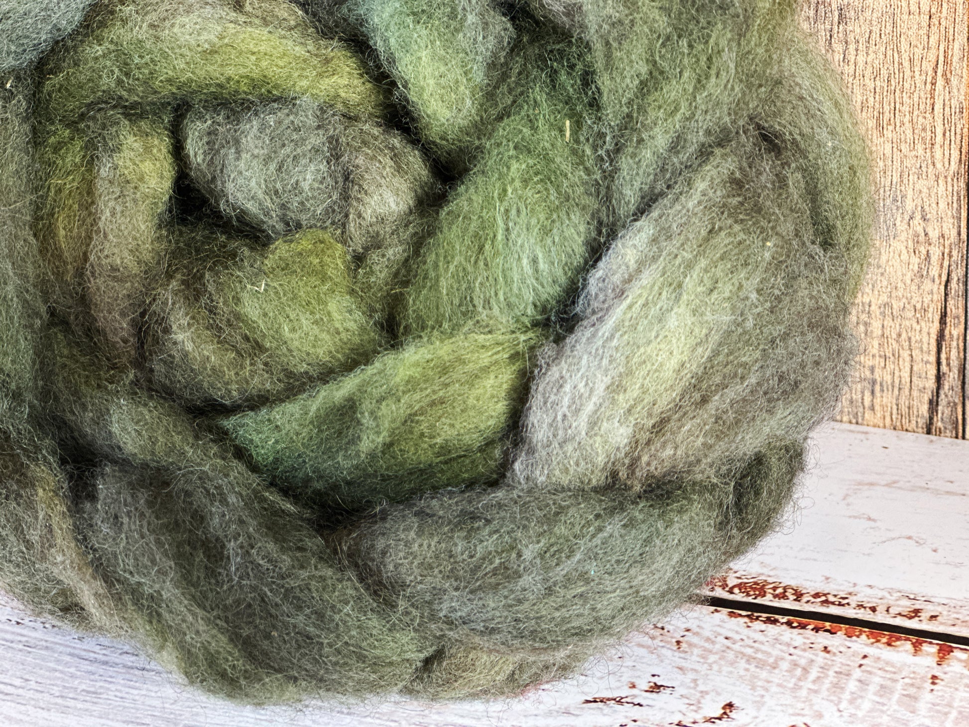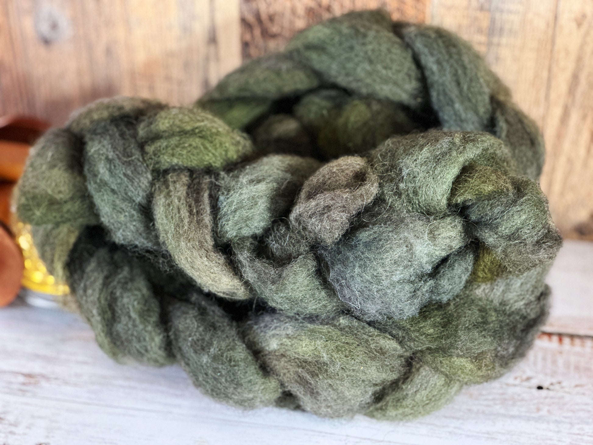 Moss Green 80/20 Shetland and Southdown Heathered Wool Roving