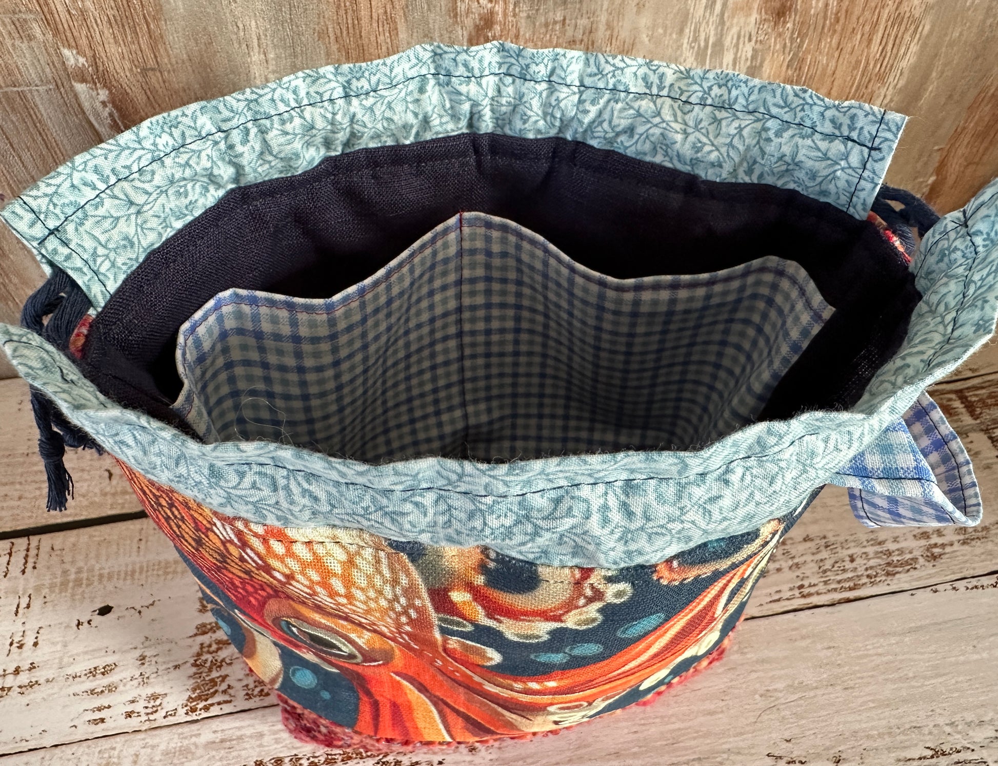 These drawstring bags are perfect for knitting, crochet, sewing or embroidery projects on the go. A beautiful quality product - fully lined, a stylish but simple drawstring closure, with the added bonus of a sturdy wrist strap.