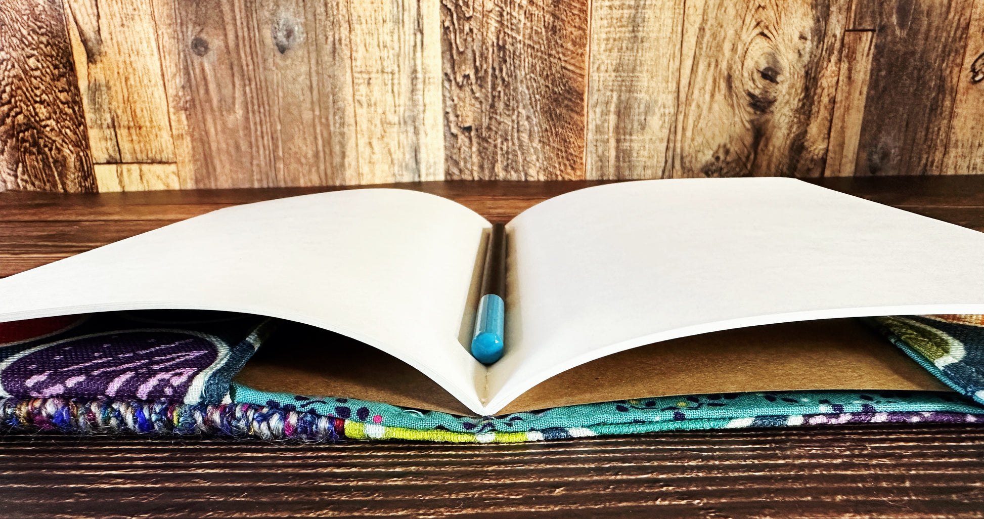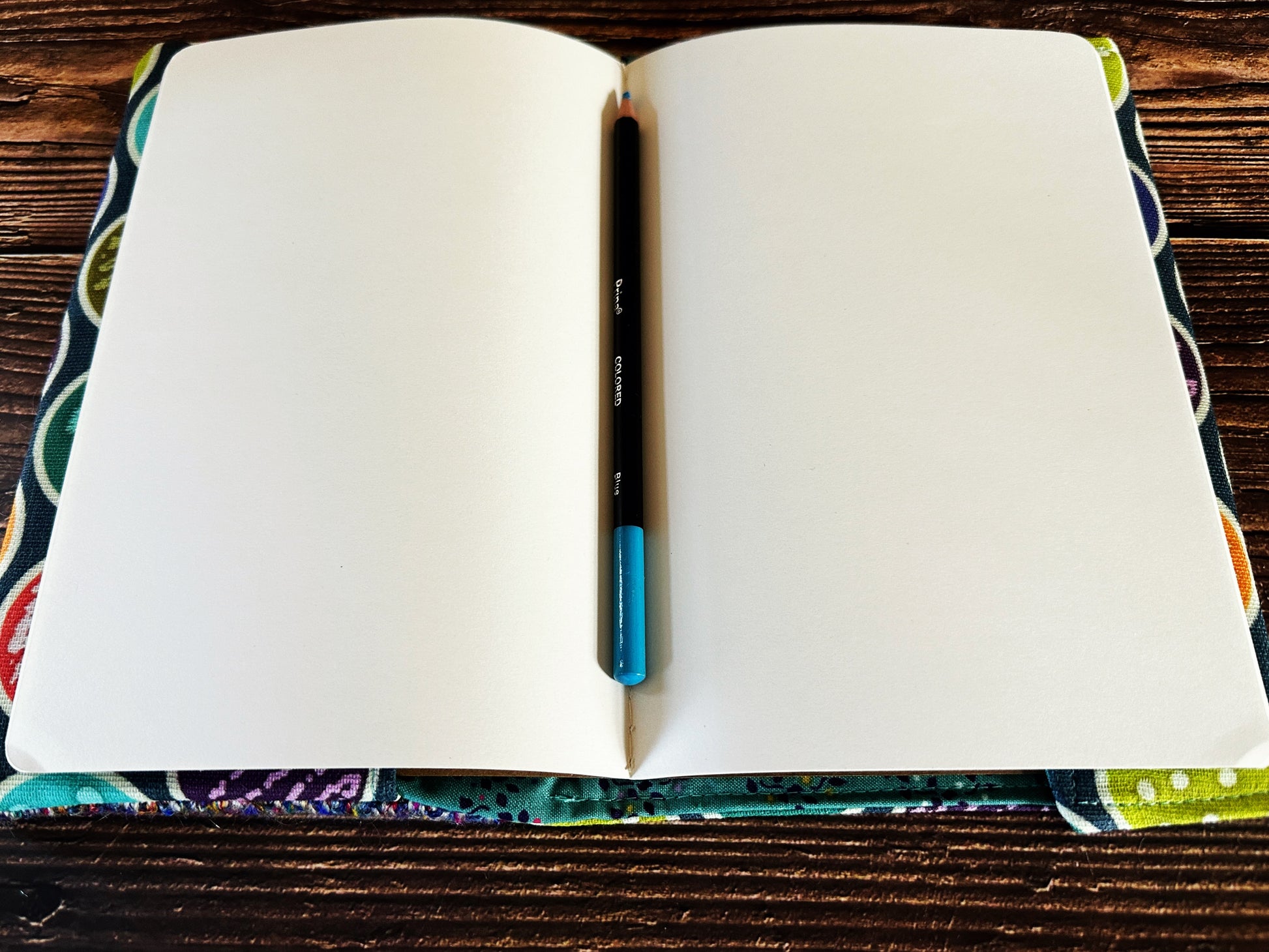 Designed to fit A5 journals, notebooks, and sketchpads, the cover features an adjustable construction that accommodates both slim notebooks and thick, well-loved volumes. Simply slide your book into the inner flaps and let the wool and coordinating cotton print wrap it in durable, handmade comfort.
