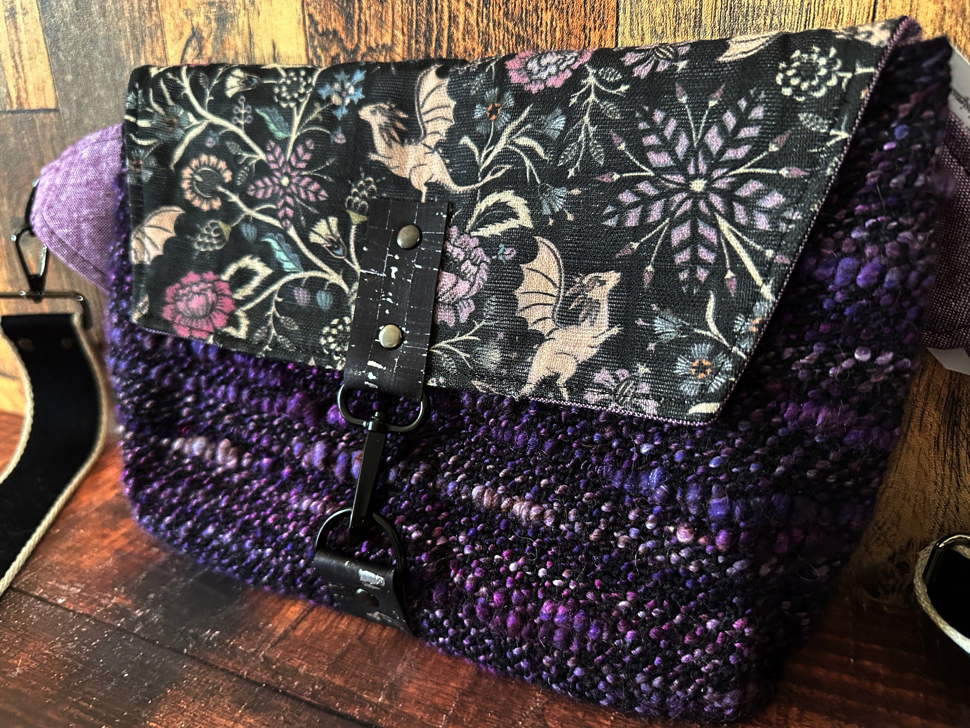 Pollinator Dragon and Woven Wool Crossbody Sling Bag