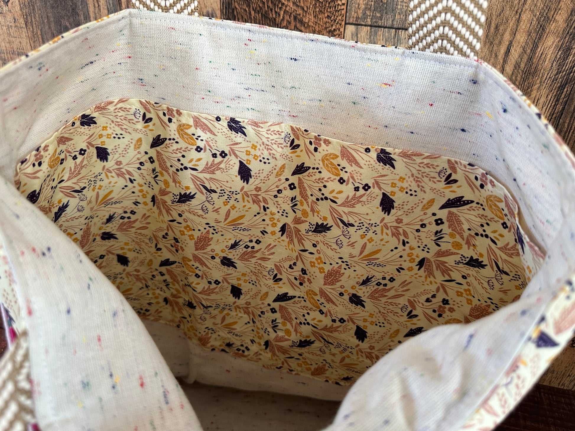 My exquisite extra-large tote, crafted for the adventurer in you! Made from custom printed cotton, cotton poplin, linen, and handspun and handwoven wool, it boasts both softness and structure, ensuring a perfect companion for any journey.