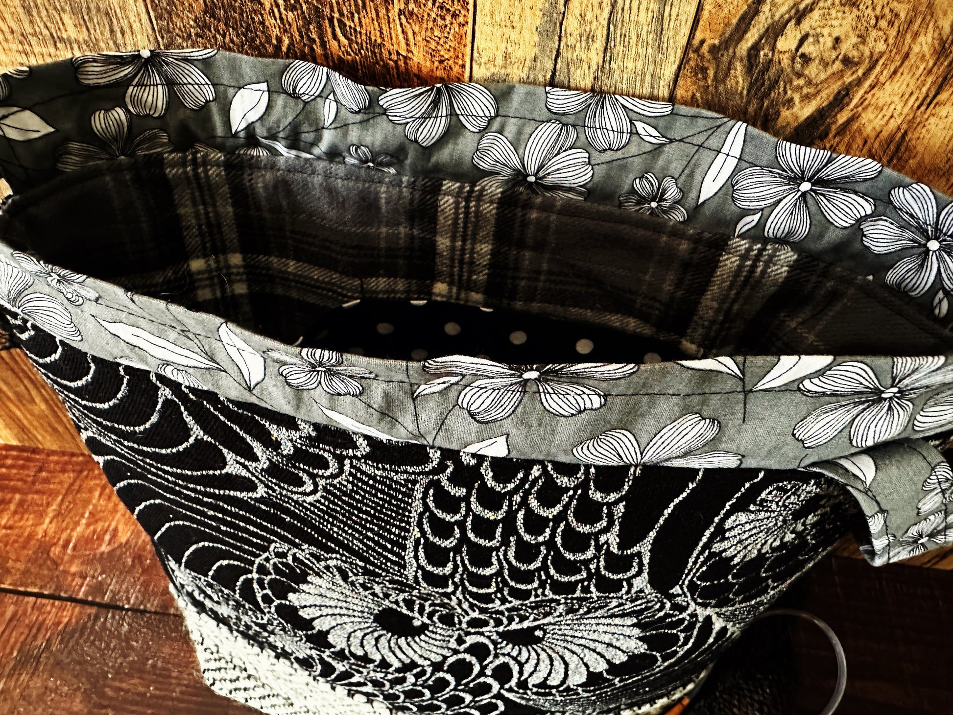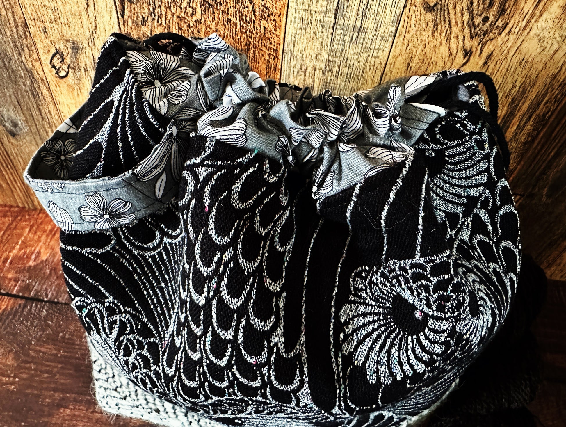 The ideal companion for your crafting endeavors on the move! These drawstring bags are meticulously crafted to cater to your knitting, crochet, sewing, or embroidery projects. Handmade with care, each bag is fully lined and boasts a stylish yet simple drawstring closure, enhanced with the convenience of a sturdy wrist strap.