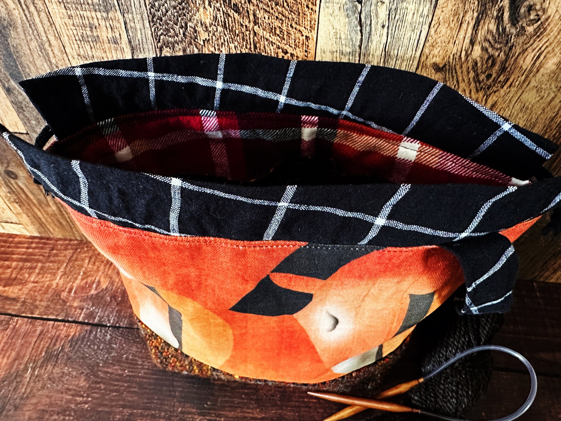 This bag is a size MEDIUM: Perfect for slightly larger projects such as scarves, baby clothes and blankets, etc. It easily fits three skeins of sock weight or two skeins of worsted weight plus your project.