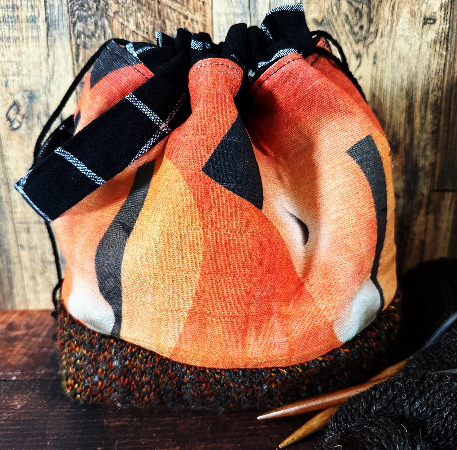 Adorned with a delightful array of handspun, handwoven wool, linen, cotton poplin, and other exquisite fabric accents, these bags exude both charm and functionality. Whether you're off to a crafting class or simply crafting on the go, these bags ensure your tools and materials are kept organized and accessible wherever your creativity takes you.