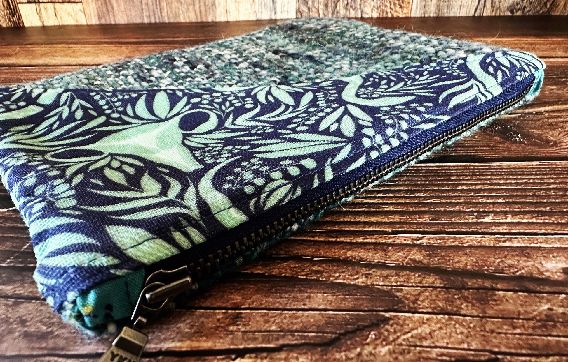 Sized at 6.5 x 9 inches, it’s perfect for corralling the essentials—your phone, pens, small tools, cosmetics, craft notions, or anything that needs a little handmade home of its own. Finished with a metal zipper and sturdy construction, it’s designed for years of everyday use.