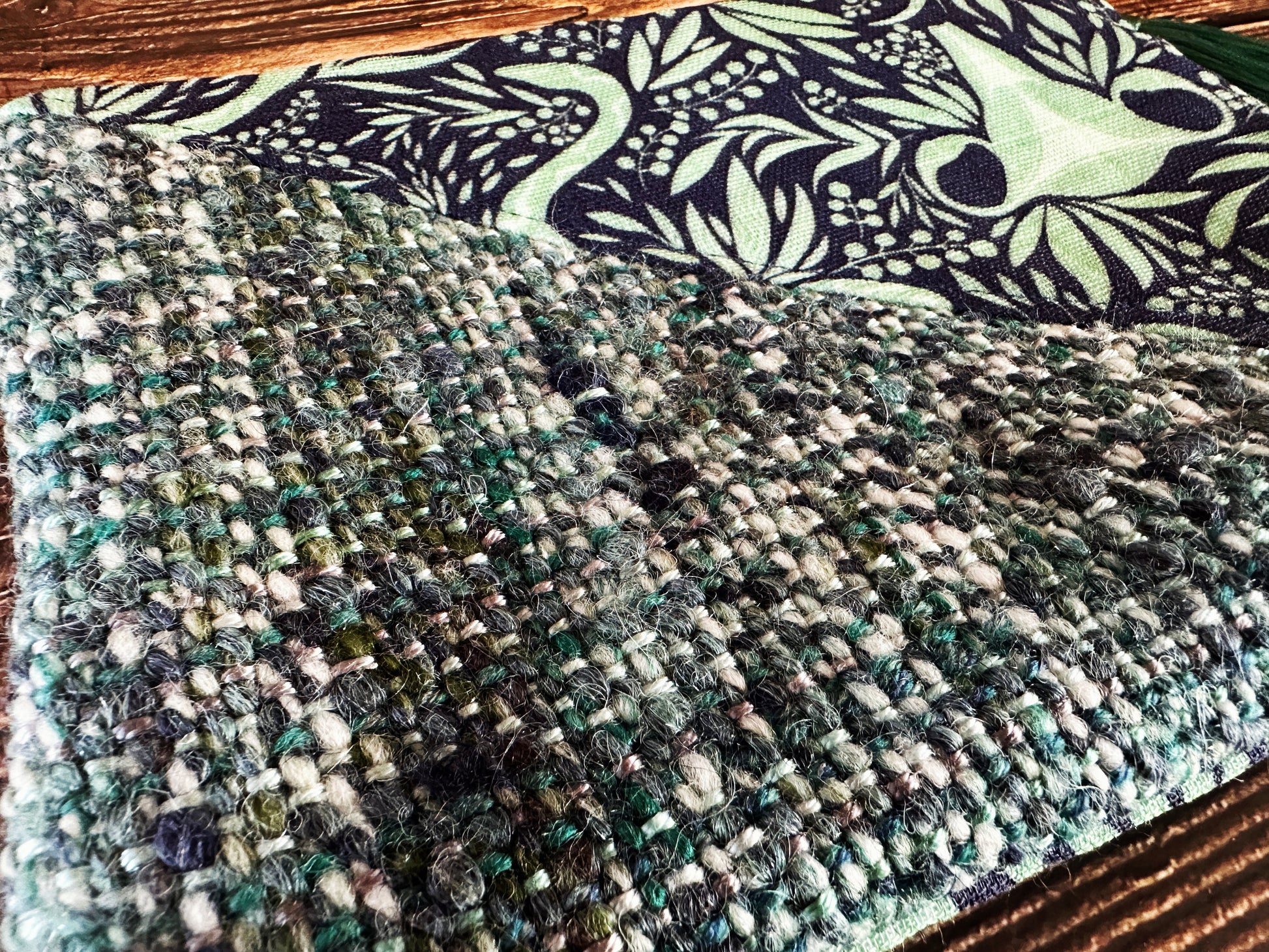 This simple, beautifully made zipper pouch brings together the best of my farm and studio. The wool fabric is handspun and handwoven from the fleeces of my own sheep and goats, creating a one-of-a-kind texture you can feel the moment you pick it up. Paired with custom-printed cotton, it’s both down-to-earth and quietly elegant.